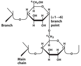 mạch thẳng và liên kết a-1,6-glycosid ở chỗ phân nhánh